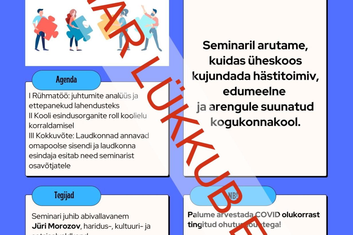 Saime abivallavanem Jüri Morozov´ilt teate, et 1. märtsiks planeeritud seminar lükkub edasi kõrge nakatumisohu tõttu edasi.
