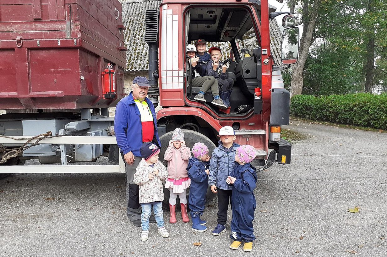 Lustilapse rühm tähistas vanavanemate päeva esmaspäeval, 11. septembril. Seekordsed külalised olid Rene Richardi ja Laureeni vanaema ja vanaisa Anne ja Olev Kalf. Annel ja Olevil on üldse kokku seitse lapselast. Vanaisa Olev saabus lasteaia juurde oma tööautoga. Vaatasime autot, saime teada, et selle veoautoga veetakse vilja, kruusa ja ka segu asfaldi jaoks. Lapsed tohtisid sisse võtta koha juhiistmel, kõik soovisid korraks nii suure auto rooli taga istuda. Täiskasvanud jälgisid muidugi hoolega, et turvalisus oleks tagatud. Veoauto avaldas ühele poisile nii võimsat muljet, et ta otsustas suureks saades autojuhiks õppida.