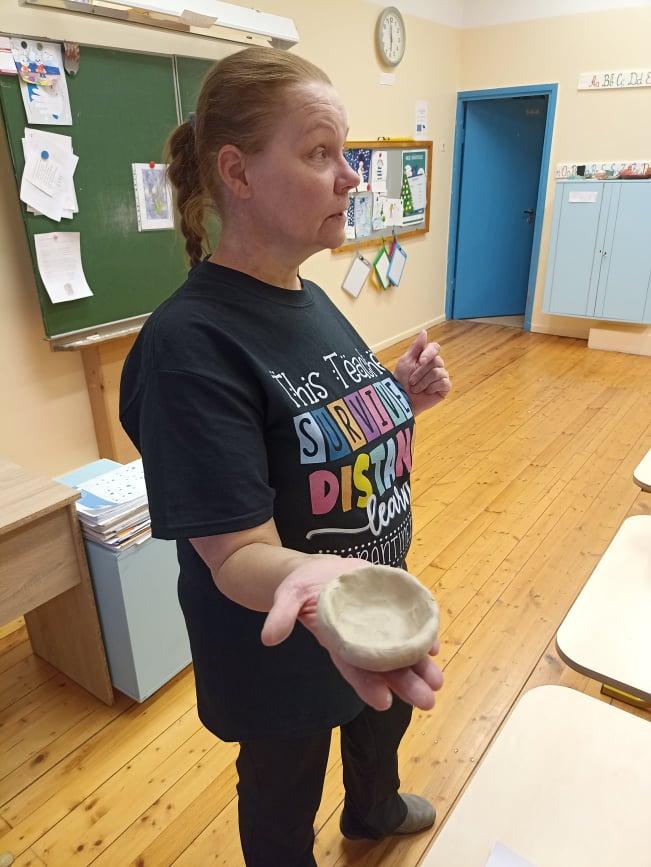 8. märtsil toimus meie tulevastele koolisõpradele 1. klassi minejatele esimene eelkooli kohtumine. Lastel oli meeldiv kohtumine klassiõpetajaga Anu Vendelin, kes pakkus lastele mõnusat tegevust saviga ja rahulikus meeleolus värvimist. Kohtumisel kujundati käelisi oskusi ja vilumusi, arendati kujutlusvõimet ja loovust, õpetati töö ja korra harjumusi ning suunati lapsi tajuma värve, õpetati nägema ja edasi andma motiive ümbritsevast. Lastel valmisid savist kausikesed, mis ootavad lõpliku valmimiseks kuivamist ning värvikirevad pildid, mida lapsed said koju kaasa võtta. Laste sõnul oli tunnitegevus meeldiv.