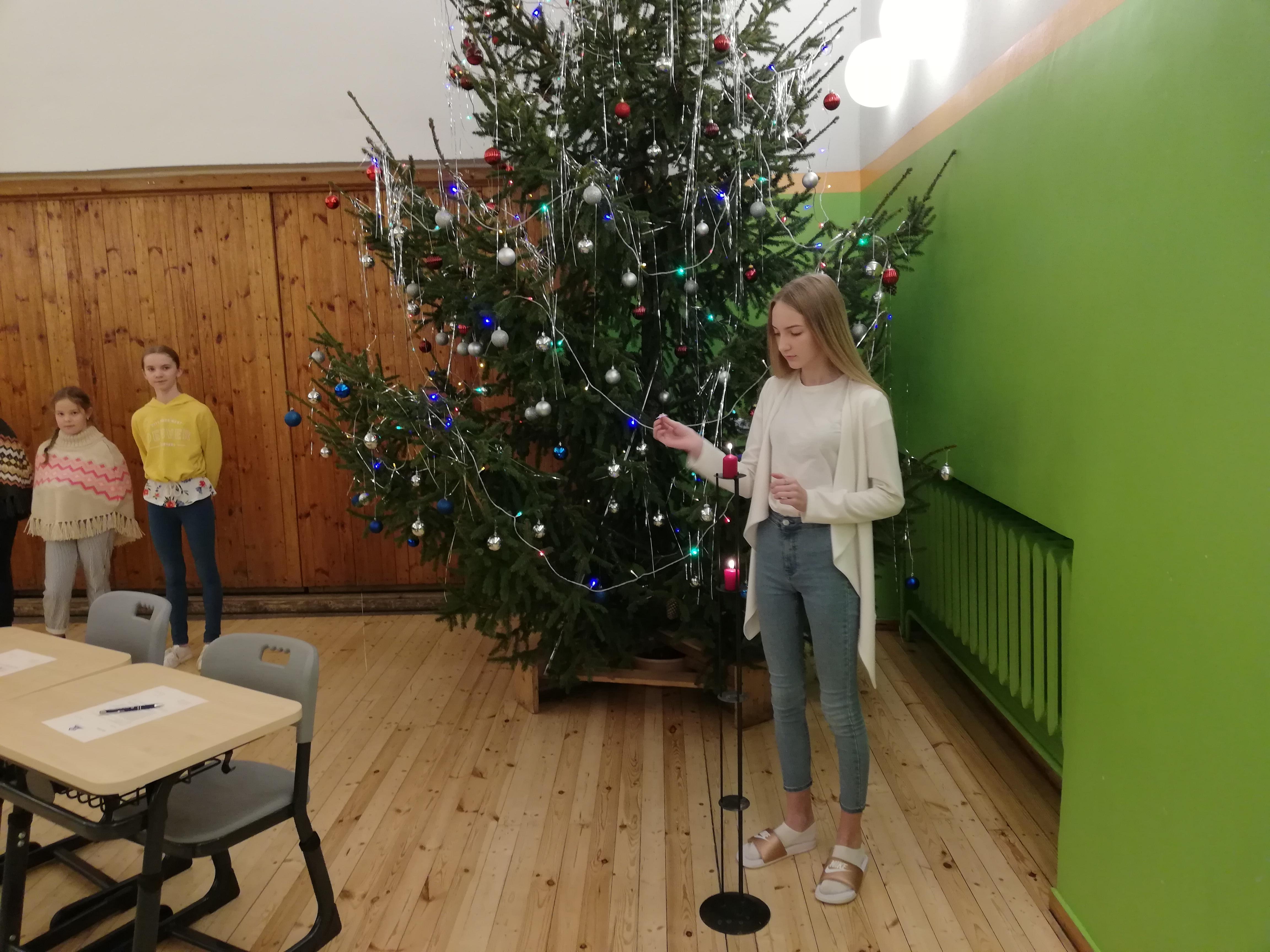 Enne koostööleppe allkirjastamist süütas õpilasesinduse president kooli jõulukuusel 2. advendiküünla.